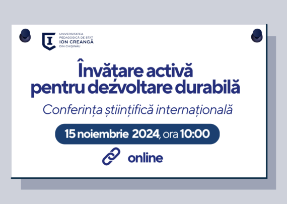 Universitatea Pedagogică de Stat „Ion Creangă” din Chișinău organizează la 15 noiembrie 2024, ora 10:00, în regim online, Conferința științifică internațională „Învățare activă pentru dezvoltare durabilă”. La evenimentul științific consacrat problemelor actuale, realizărilor teoretice și practice dar și perspectivelor de dezvoltare ale didacticii științelor (fizică, chimie, biologie, astronomie, științe ale […]