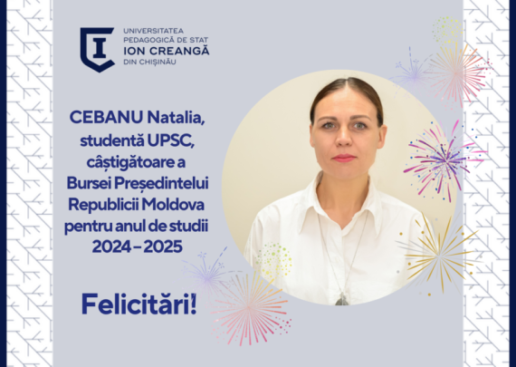 Pentru rezultate excepționale în studii, CEBANU Natalia, studentă în anul III la Facultatea de Științe ale Educației, Universitatea Pedagogică de Stat „Ion Creangă” din Chișinău este câștigătoare a Bursei Președintelui Republicii Moldova pentru anul de studii 2024 – 2025. Comunitatea academică a Universității Pedagogice de Stat „Ion Creangă” din Chișinău […]