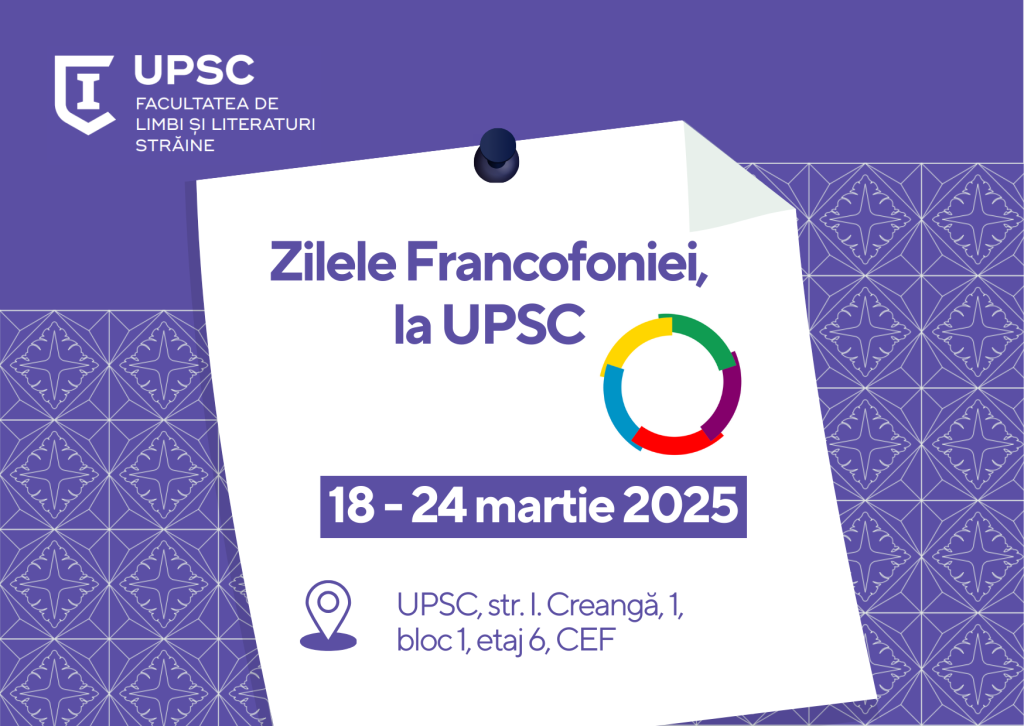 Astfel, Facultatea de Limbi și Literaturi Străine, Catedra Filologie Romanică și Germanică organizează în perioada 18 – 24 martie 2025, Zilele Francofoniei, la UPSC, cu următorul program: