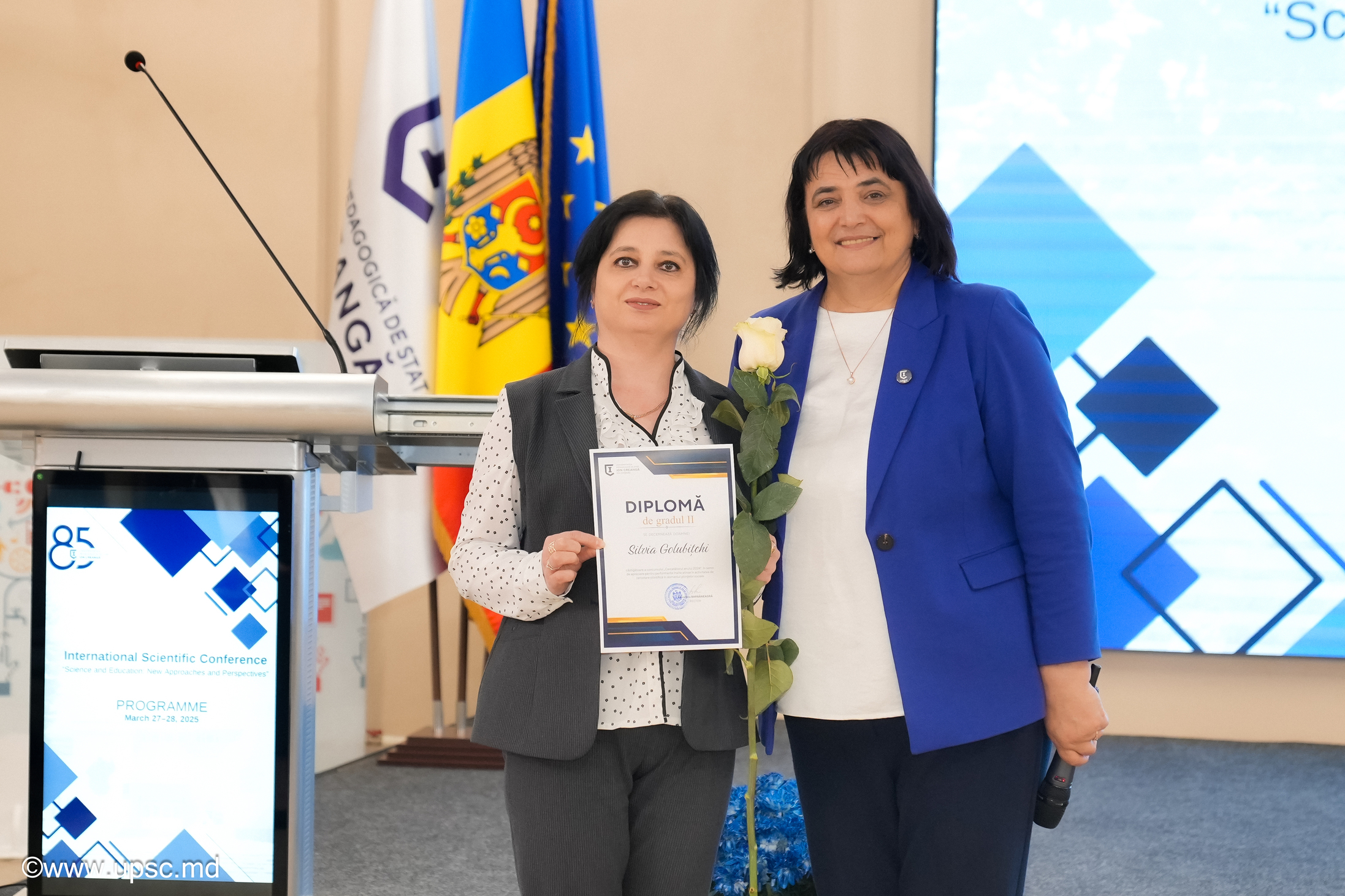 Ședința plenară s-a încheiat cu ceremonia de premiere a laureaților concursului „Cercetătorul anului 2024” și „Tânărul cercetător al anului 2024” organizat în cadrul Universității Pedagogice de Stat „Ion Creangă” din Chișinău.