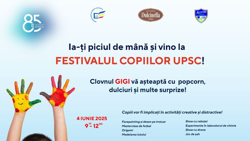 Universitatea Pedagogică de Stat „Ion Creangă” din Chișinău invită angajații instituției să celebreze alături de cei mici bucuria copilăriei în cadrul Festivalului Copiilor UPSC, un eveniment dedicat zâmbetelor sincere, jocului liber și descoperirii prin activități educative și distractive.