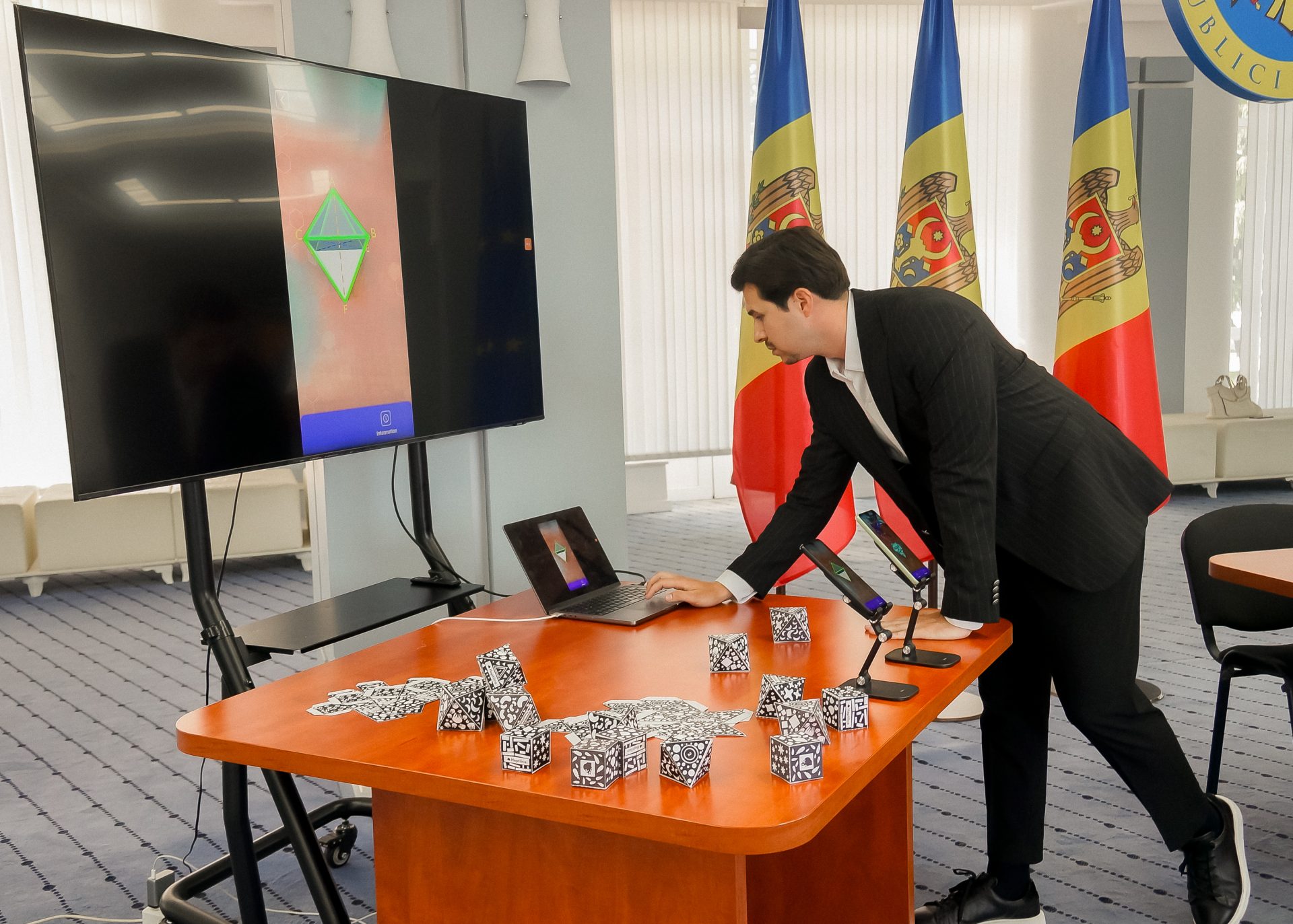 Emil Chichioi, fondatorul companiei Bloomcoding a realizat prezentarea tehnică a platformei oferind participanților o demonstrație practică a modului în care funcționează „Haptilica” și a evidențiat avantajele sale în procesul de predare–învățare.