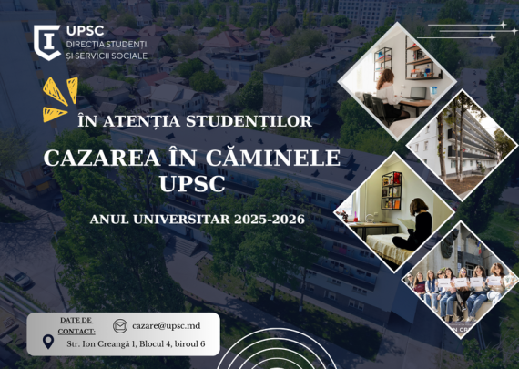 Universitatea Pedagogică de Stat „Ion Creangă” din Chișinău informează studenții că procesul de cazare în căminele studențești pentru anul universitar 2025–2026 se desfășoară online. Etapele procesului de cazare: 30–31 august 2025 – prezentarea studenților la căminul repartizat, cu dovada achitării taxei. Pentru detalii suplimentare, studenții sunt rugați să consulte cu regularitate adresa […]