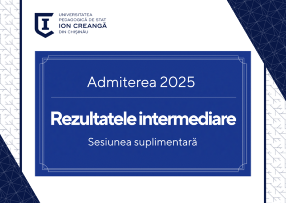 Dragi candidați la studii, Rezultatele intermediare ale concursului de admitere 2025, sesiunea suplimentară, la Universitatea Pedagogică de Stat „Ion Creangă” din Chișinău, sunt publicate! Depunerea actelor în original pentru confirmarea locului obținut se va realiza în perioada 21 – 23 august 2025, la sediul Comisiei de Admitere, str. I. Creangă, […]