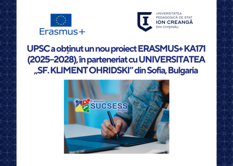 Secția Relații Internaționale și Managementul Proiectelor a UPSC are plăcerea de a anunța câștigarea unui nou proiect Erasmus+ KA171 pentru perioada 2025–2028, în colaborare cu Universitatea „Sf. Kliment Ohridski” din Sofia, Bulgaria – una dintre cele mai prestigioase instituții de învățământ superior din regiune.