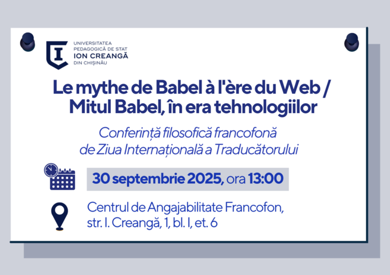 Conferință filosofică francofonă de Ziua Internațională a Traducătorului „Le mythe de Babel à l’ère du Web / Mitul Babel, în era tehnologiilor”