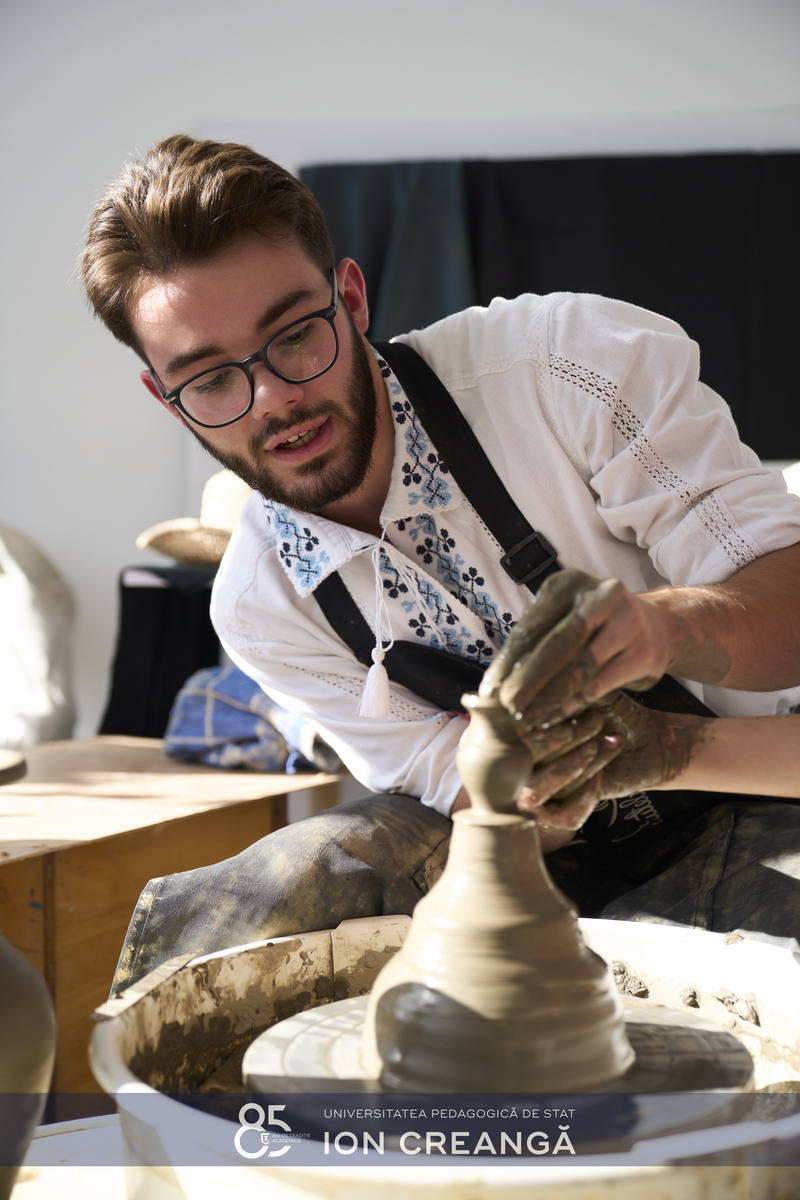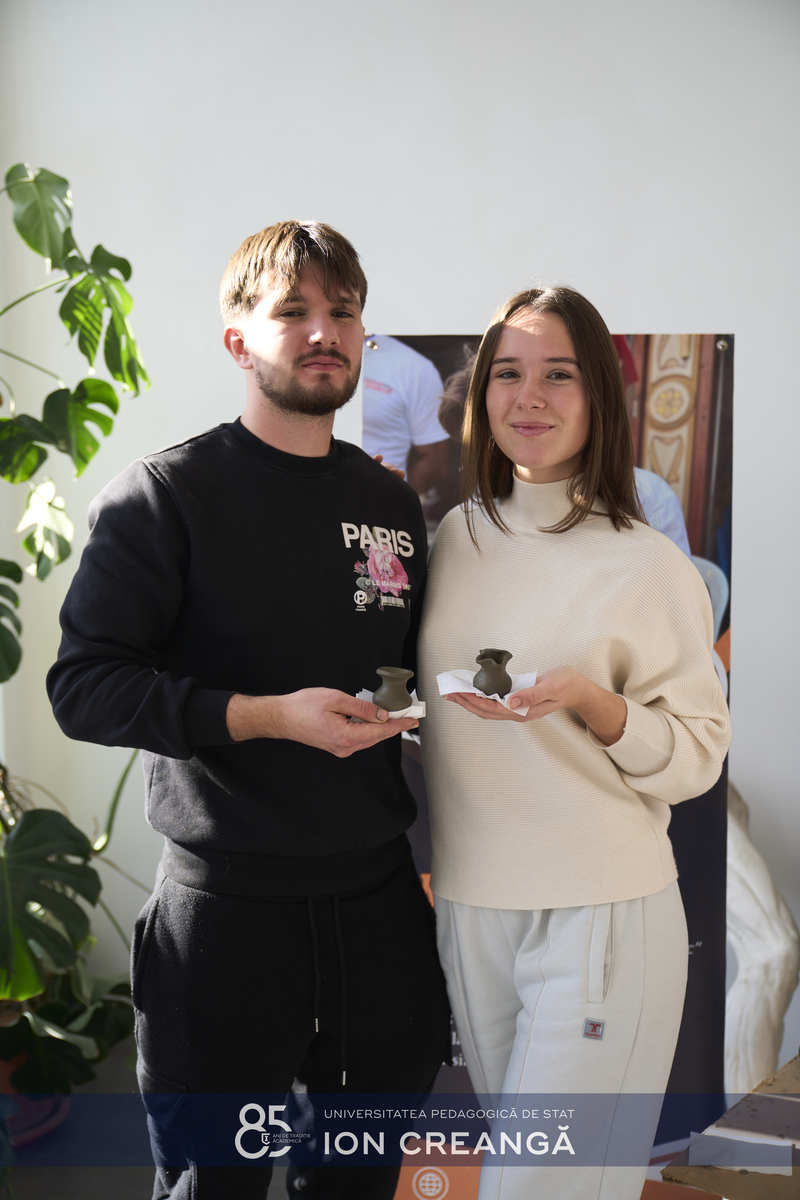 Sub îndrumarea meșterului și studentului la programul de studii Arte Decorative de la Facultatea de Arte Vizuale și Design a UPSC, Nicu Scutelnic, participanții au descoperit tainele olăritului, au modelat lutul și au transformat bucăți simple de pământ în obiecte pline de expresivitate și creativitate.