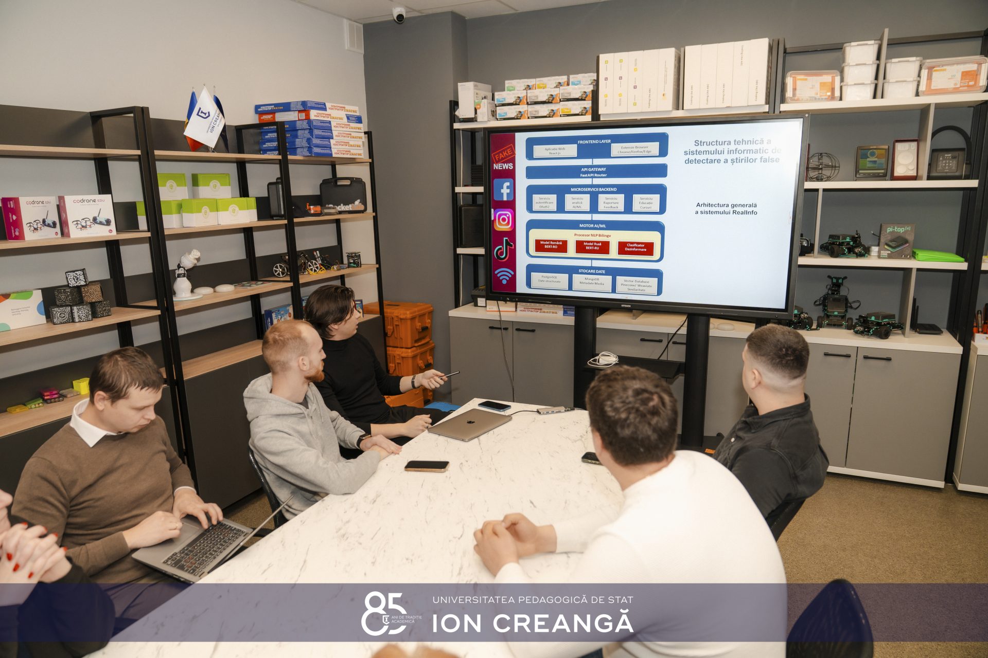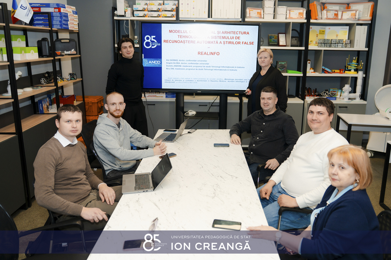 Astfel, azi, 26 noiembrie 2025, în cadrul Direcției Tehnologii Informaționale, membrii proiectului de cercetare „Metodologia dezvoltării unui model integrat de detectare și combatere a dezinformării în Republica Moldova: abordare tehnologică și socio-educațională” cu cifrul 25.80012.0807.65SE (MIDECOD), finanțat de Agenția Națională pentru Cercetare și Dezvoltare din Republica Moldova, manager de proiect dr., conf. univ. Angela Globa, au prezentat rezultatele științifice obținute după finalizarea etapei a două, care include 4 activități.