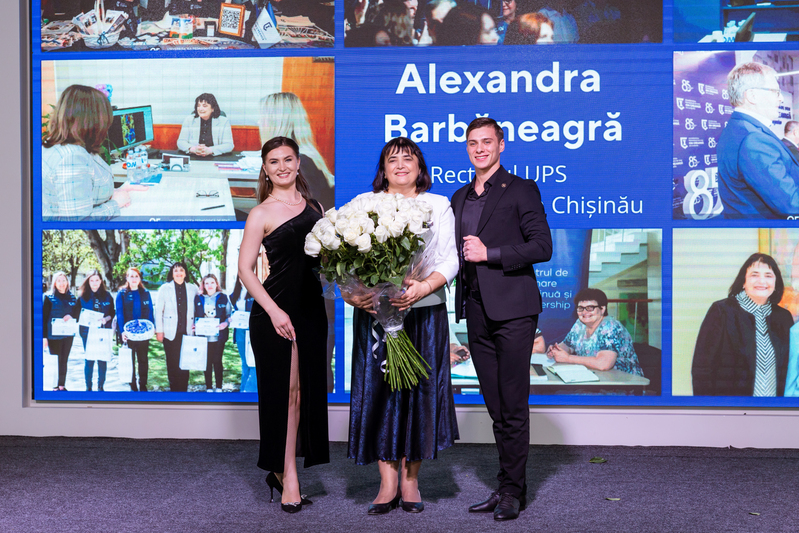 Trofeul de Excelență i-a fost înmânat de însăși doamna rector Alexandra Barbăneagră, care, pe lângă premiul de 5000 de lei din partea UPSC și cadourile din partea partenerilor, a felicitat-o personal pe noua „Studentă a Anului”.
