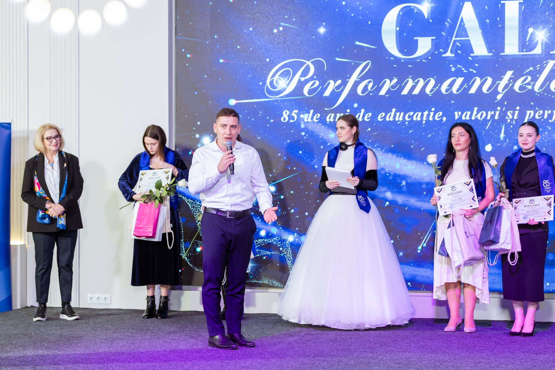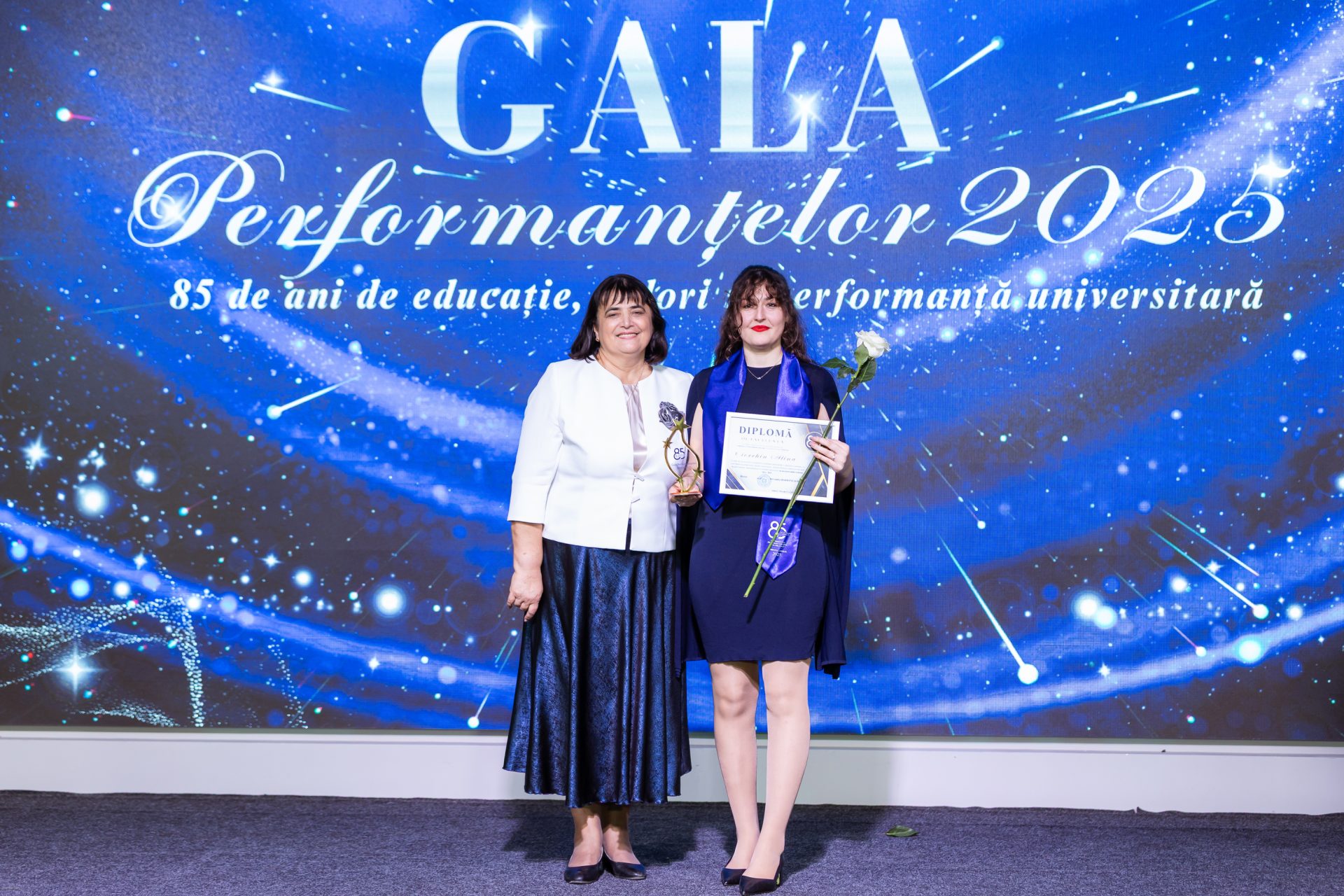 Gala a fost onorată de prezența și discursul rectorului UPSC, Alexandra Barbăneagră, care a subliniat importanța performanței ca tradiție în cadrul instituției. Momentul central al serii l-a constituit premierea celor 29 de participanți la competiția performanțelor 2025, care au demonstrat un spirit competitiv și o dorință de afirmare academică remarcabilă.