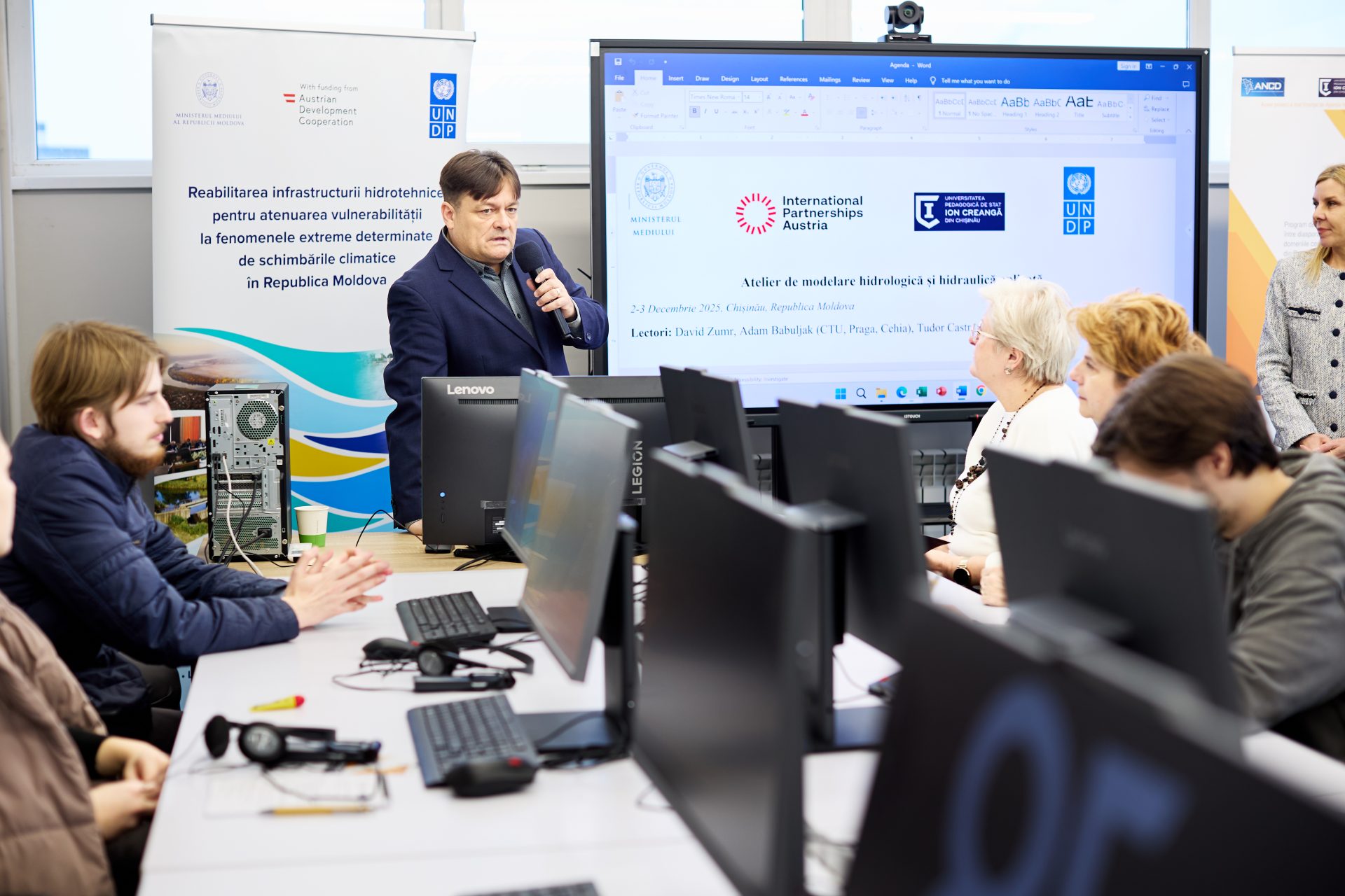În perioada 2 – 3 decembrie 2025, Universitatea Pedagogică de Stat „Ion Creangă” din Chișinău, prin proiectul internațional MERCI-MC, a organizat un atelier intensiv de modelare hidrologică și hidraulică dedicat fenomenelor extreme cauzate de schimbările climatice. Activitatea a reunit 35 de specialiști ai Serviciului Hidrometeorologic de Stat, Administrației Naționale „Apele Moldovei”, Inspectoratului General pentru Situații de Urgență, Institutului de Ecologie și Geografie, precum și studenți și masteranzi ai Universității Pedagogice de Stat „Ion Creangă”.