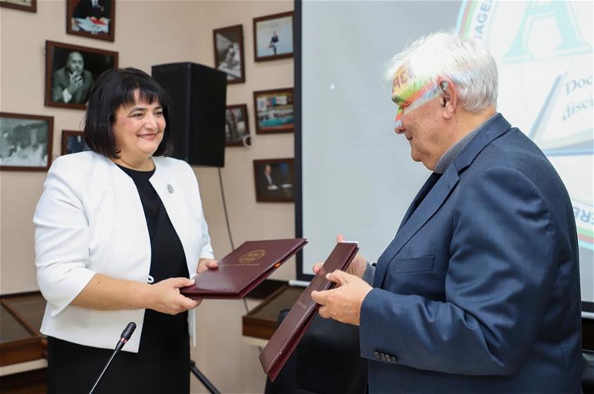 Ceremonia de înmânare a titlului onorific a avut loc la Universitatea de Limbi din Baku, în cadrul manifestărilor festive dedicate aniversării a 75 de ani de la nașterea academicianului Kamal Abdulaev. Delegația UPSC a fost reprezentată de Alexandra Barbăneagră, rector UPSC; Gabriella Topor, decan al Facultății de Filologie și Istorie; Ludmila Bejenaru, dr. hab., prof. univ.; Ana Simac, decan al Facultății de Arte Vizuale și Design, și Victoria Belous, director CNIDE.