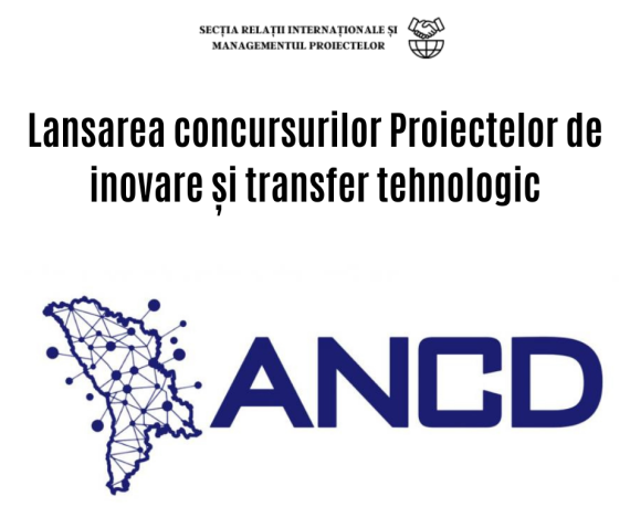 Secția Relații Internaționale și Managementul Proiectelor anunță că Agenția Națională pentru Cercetare și Dezvoltare a lansat Concursul Proiectelor de inovare pentru anul 2023 și Proiectelor de transfer tehnologic pentru anul 2023. Termenul-limită de depunere a propunerilor de proiecte (atât varianta electronica cât și cea pe hârtie) este 30.07.2022, ora: 17:00. Pentru detalii, accesați următoarele surse: aici […]